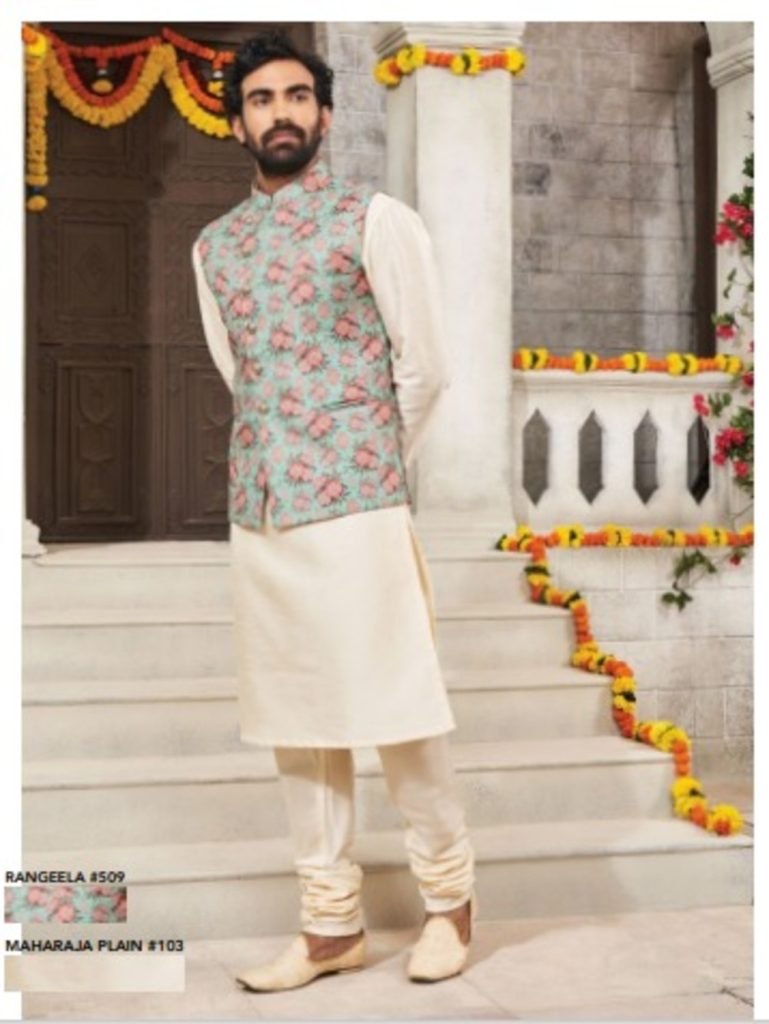 ₹5,760.00Fabric: Imported Jacquard Size: 42 Color: Green Sleeve Length: Full Sleeve The Product Price Is Inclusive Of: Jodhpuri Suit And Lower