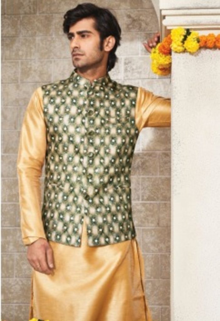 ₹4,822.00Fabric: koti-Tarry Rayon Printed ,Kurta-Dupon Silk Color: koti-Green, Kurta-Golden