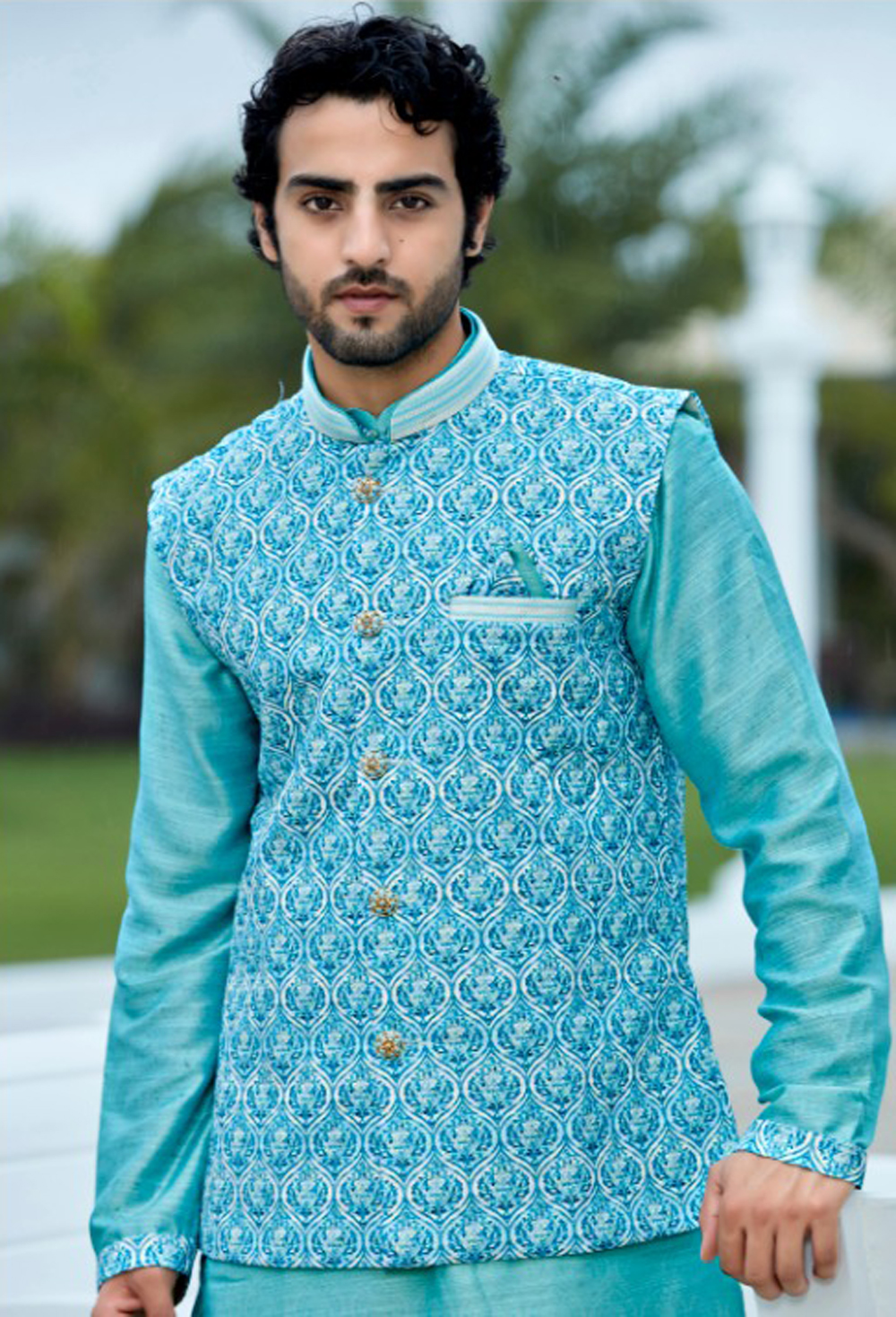 Fabric: Kurta- Jacquard, Bottom-Silk Color: Kurta-Aqua, Bottom-White