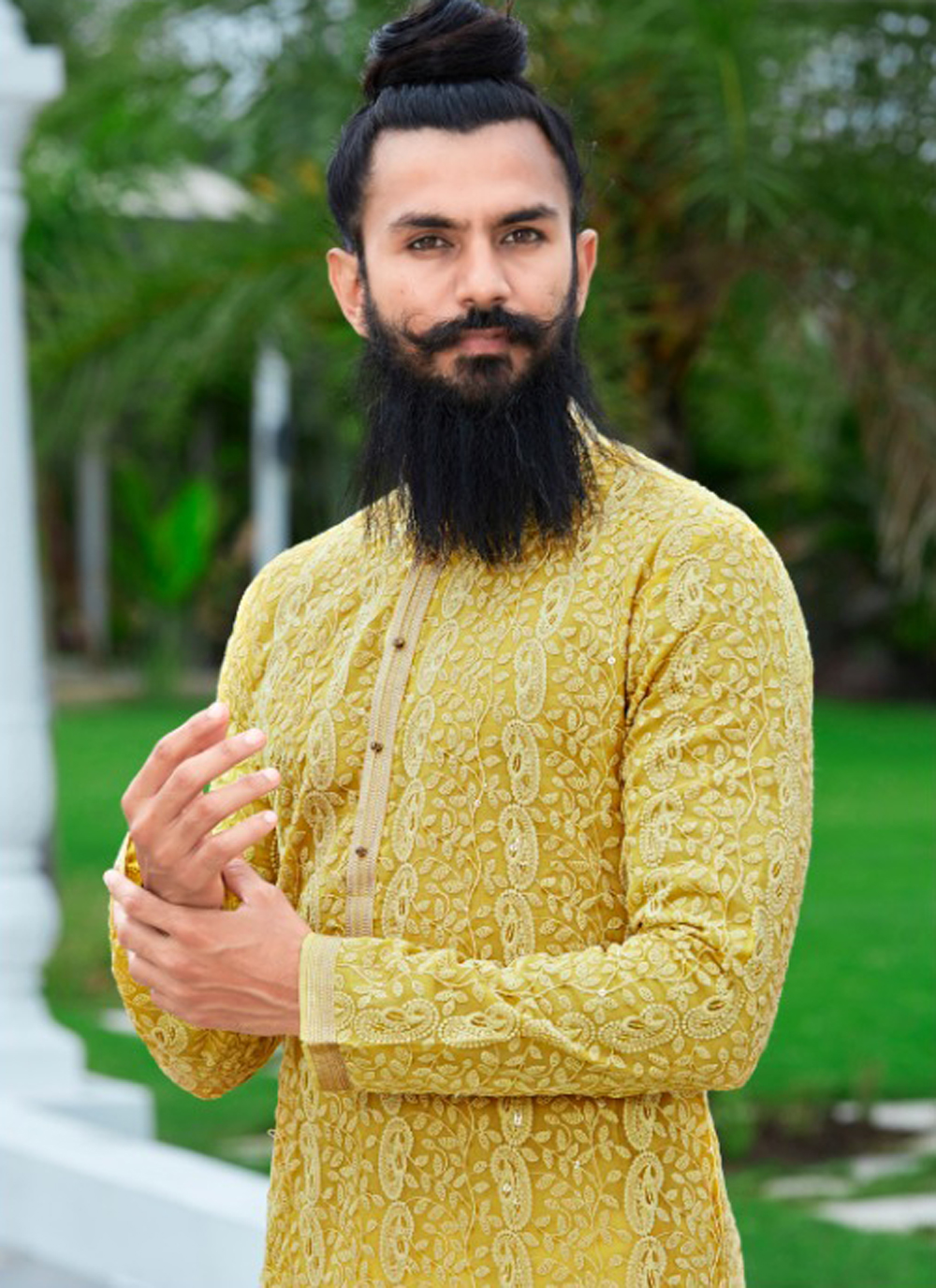 Fabric: Silk Color: Kurta-Yellow, Bottom-White